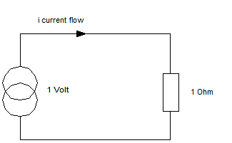 With a continuous supply voltage of one volt across a constant resistance of one ohm, we have (by ohms law) a continuous current flow of one Amp.